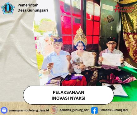Pemerintah Desa Gunungsari melakukan Inovasi NYAKSI dengan menyerahkan dokumen berupa Kartu Keluarga dan Akta Perkawinan saat upacara pernikahan kepada Warga Banjar Dinas Sekar , Desa Gunungsari pada Rabu, 29 April 2026.